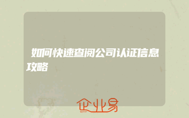 - 如何快速查阅公司认证信息攻略随着网络时代的发展,企业经营中各种认证信息日益成为衡量企业信用、服务质量的关键指标。下面我们就共同探究一下如何快速查阅公司的认证信息,更好地满足大家的查询需求。一、明确查询目