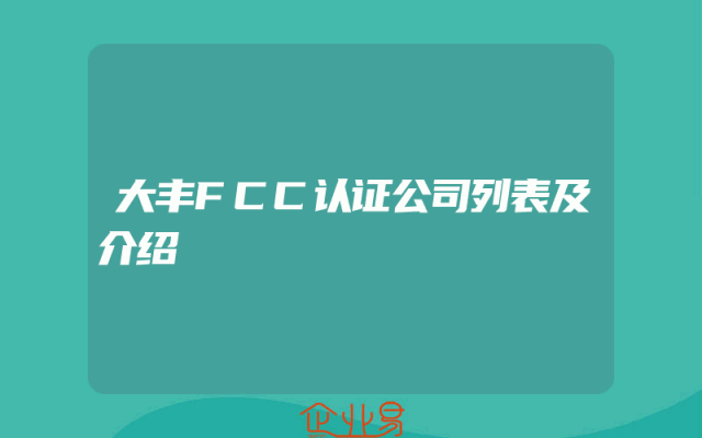 - 大丰FCC认证公司列表及介绍