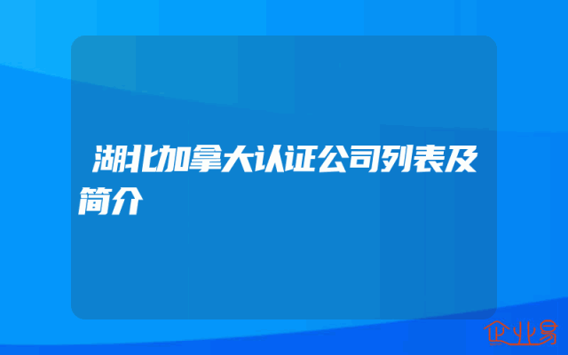 - 湖北加拿大认证公司列表及简介