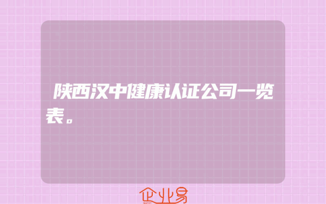 - 陕西汉中健康认证公司一览表。