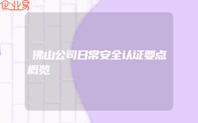 - 佛山公司日常安全认证要点概览一、安全管理体系建设在佛山,企业日常安全认证的首要任务是建立完善的安全管理体系。企业应设立专门的安全管理部门,并配备合格的安全管理人员。安全管理体系应包括安全政策、安全目标、安全责任制度等方面内容。企业应