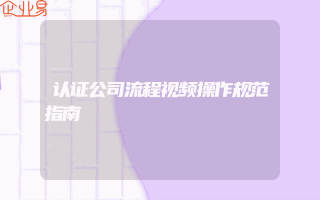 - 认证公司流程视频操作规范指南