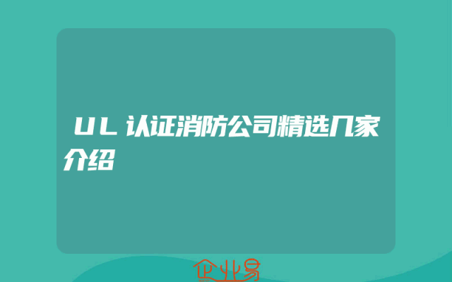 - UL认证消防公司精选几家介绍
