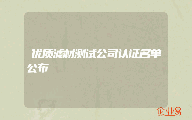 - 优质滤材测试公司认证名单公布