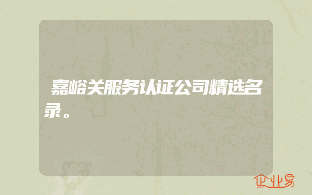 - 嘉峪关服务认证公司精选名录一、嘉峪关服务认证概述嘉峪关,这座历史悠久的城市,不仅是西北的交通枢纽,也是众多企业发展的热土。随着服务行业的兴起和发展,许多专业、正规的服务认证公司在嘉峪关崭露头角。这些公司致力于为企业提供全方位的资质办理、咨询