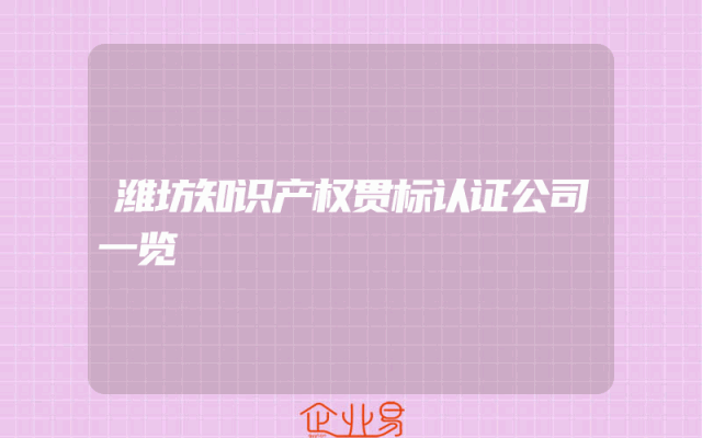 - 潍坊知识产权贯标认证公司一览