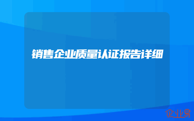 - 销售企业质量认证报告详细