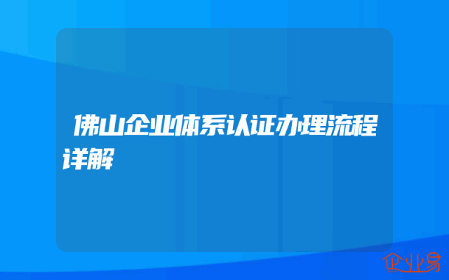 - 佛山企业体系认证办理流程详解