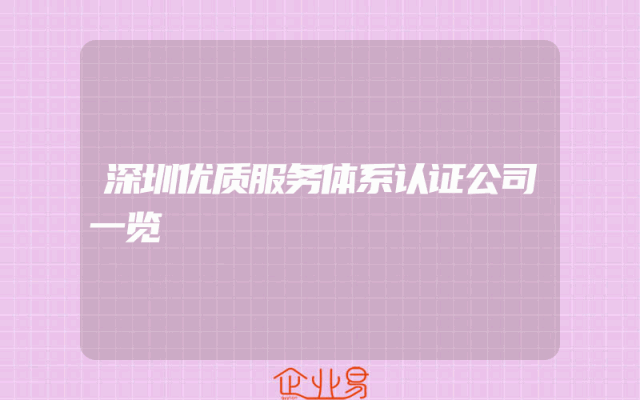 - 深圳优质服务体系认证公司一览