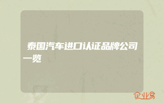 - 泰国汽车进口认证品牌公司一览