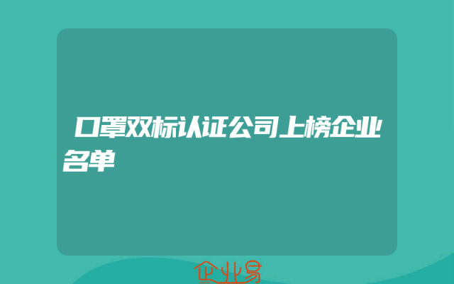 - 口罩双标认证公司上榜企业名单