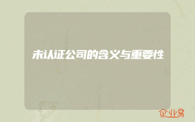 - 未认证公司的含义与重要性解析一、未认证公司的基本含义未认证公司,简单来说,是指那些尚未按照相关规定完成认证程序的企业。在企业运营过程中,许多行业或特定的业务运营需要取得相应的资质认证,以证明其具备从事某项业务的能力或达到特定的标准。对于那些