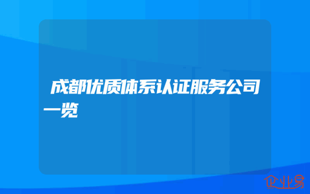 - 成都优质体系认证服务公司一览