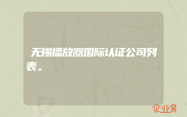- 无锡播放器国际认证公司列表。