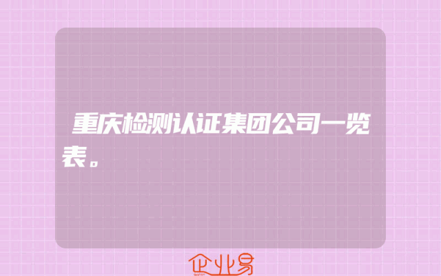 - 重庆检测认证集团公司一览表一、概述重庆作为我国西部地区的重要城市,拥有众多的检测认证集团公司,它们为当地及国内外的企业提供专业的检测认证服务,确保产品质量与安全,促进贸易交流。这些公司涵盖了多个领域,包括但不限于机械、电子、化工、食