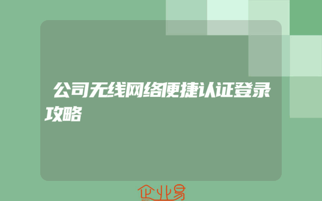 - 公司无线网络便捷认证登录攻略一、无线网络的重要性与认证登录的意义在当今信息化社会,无线网络已成为企业高效运作不可或缺的一部分。员工、客户以及合作伙伴都需要通过网络进行沟通交流,完成工作任务。而便捷的公司无线网络认证登录则是保障网络安全的关键