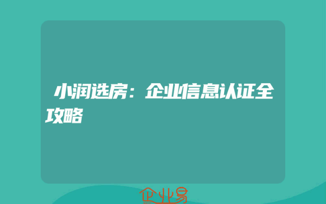 - 小润选房:企业信息认证全攻略一、了解企业信息认证的重要性在企业服务行业中,信息认证是一个不可或缺的重要环节。对于购房者而言,选择一个信誉良好、信息透明的企业进行合作至关重要。企业信息认证不仅能够保障消费者的权益,还能够提升企业的公信力和市场