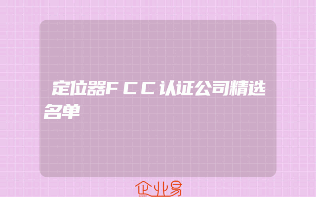 - 定位器FCC认证公司精选名单