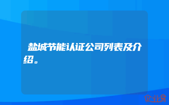 - 盐城节能认证公司列表及介绍。