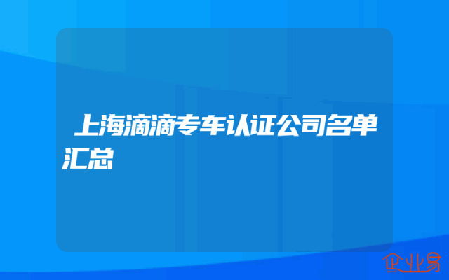 - 上海滴滴专车认证公司名单汇总