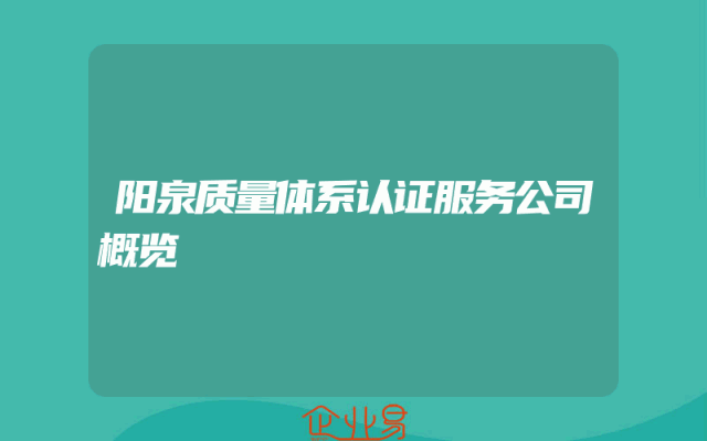 - 阳泉质量体系认证服务公司概览