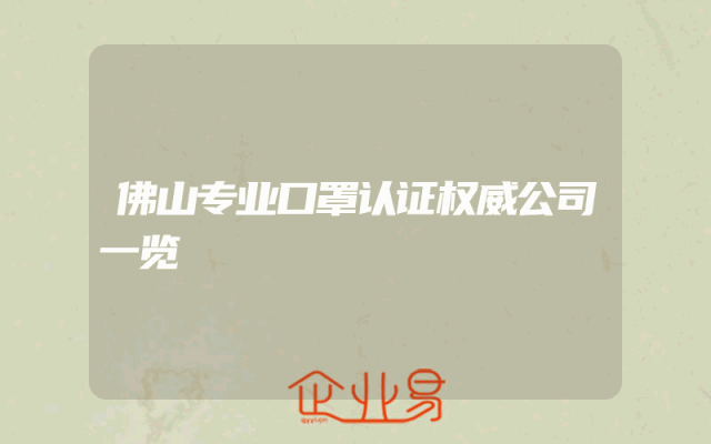 - 佛山专业口罩认证权威公司一览
