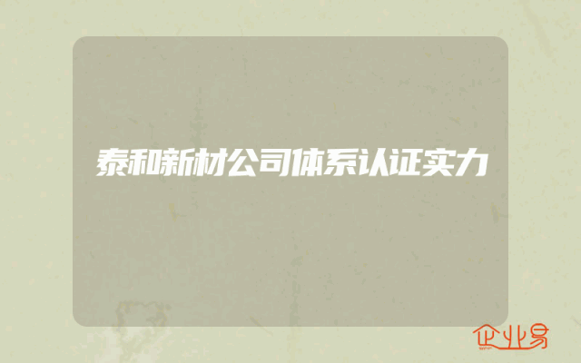 - 泰和新材公司体系认证实力