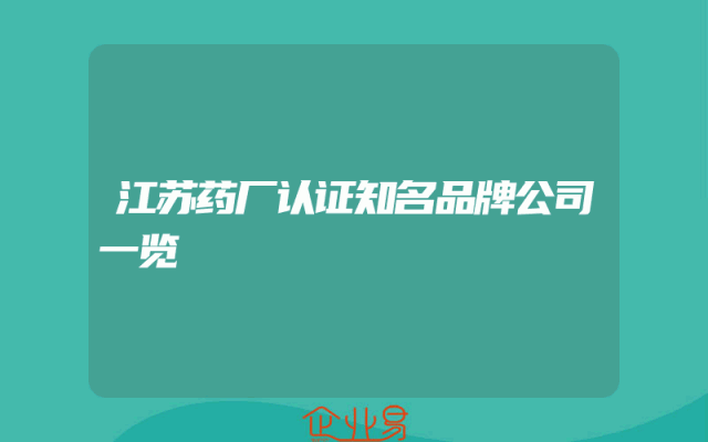 - 江苏药厂认证知名品牌公司一览