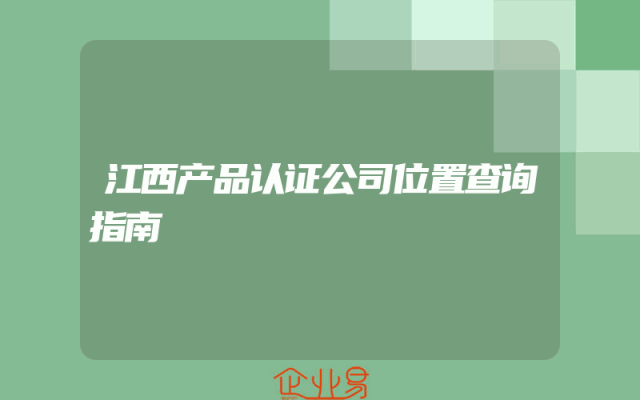 - 江西产品认证公司位置查询指南一、了解江西产品认证的重要性江西作为中国经济的一个重要省份,其产品认证在推动产业转型升级、提高产品质量等方面发挥着关键作用。产品认证是企业在市场准入的重要资质之一,它不仅能帮助企业拓展市场,还能提升企业的品牌形象