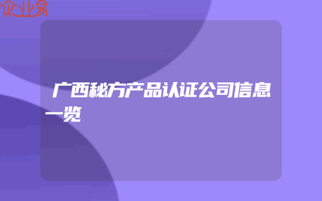 - 广西秘方产品认证公司信息一览一、认证公司概述随着健康产业的快速发展,广西秘方产品因其独特的疗效和深厚的文化底蕴受到了广泛关注。为了满足市场的需求,广西秘方产品认证公司致力于为广大消费者提供高质量、安全有效的产品。该公司主要负责秘方产品的认证