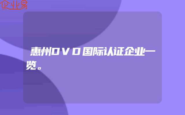 - 惠州DVD国际认证企业一览一、引言随着全球化的推进,企业参与国际竞争已成为常态。惠州,作为中国经济的重要一环,其企业对于国际认证的需求也日益增长。DVD国际认证作为企业质量、技术和管理水平的国际认可,对于惠州企业来说具有重要意义。本文将详细