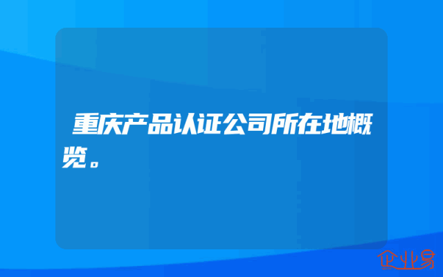 - 重庆产品认证公司所在地概览一、地理位置与交通便捷性重庆产品认证公司位于中国重庆市的核心地带,地理位置优越,交通便利。该公司所在的区域是重庆市的经济中心,紧邻高速公路、铁路和航空枢纽,保证了物流的快速流通和便捷性。这样的地理位置有利于企业与客