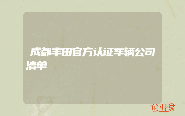 - 成都丰田官方认证车辆公司清单一、丰田在成都的发展概况丰田汽车作为全球知名的汽车制造商,在中国市场也占有重要地位。成都作为中国的西部重镇,丰田在这里的发展尤为引人注目。不仅有多家丰田官方认证车辆公司落户于此,而且其产品和服务也深受当地