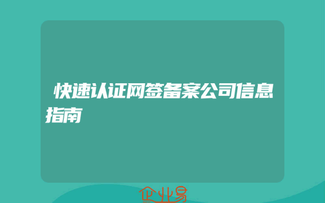 - 快速认证网签备案公司信息指南