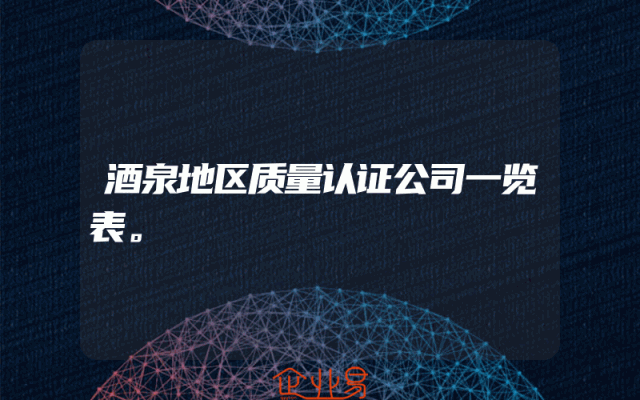 - 酒泉地区质量认证公司一览表引言酒泉地区作为经济快速发展的地区之一,众多企业在追求高质量发展的过程中,对质量认证的需求也日益增长。在这片热土上,涌现出了一批专业的质量认证公司,它们以高标准、专业化的服务,助力企业提升管理水平,赢得市场