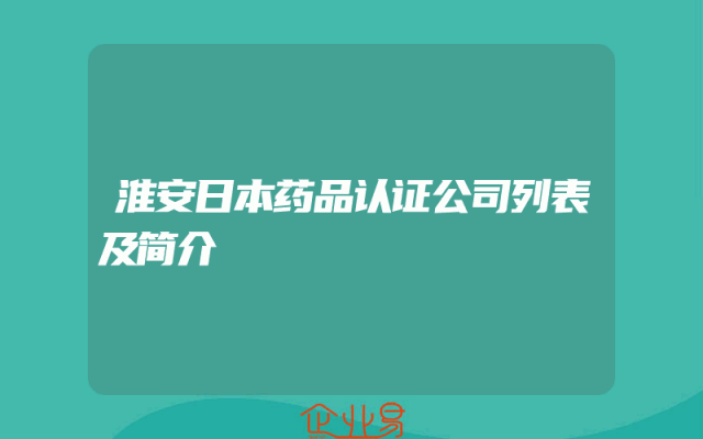 - 淮安日本药品认证公司列表及简介