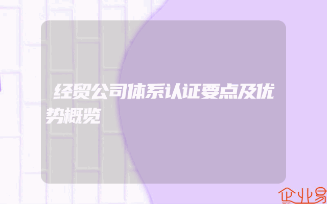 - 经贸公司体系认证要点及优势概览