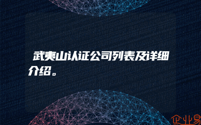 - 武夷山认证公司列表及详细介绍一、武夷山认证公司概览武夷山以其得天独厚的自然资源和丰富的文化底蕴吸引着众多企业入驻。在这样一个充满商机的地区,认证公司作为提供专业服务的重要机构,也在这里蓬勃发展。本文将为您详细介绍武夷山地区的认证公司列表及其
