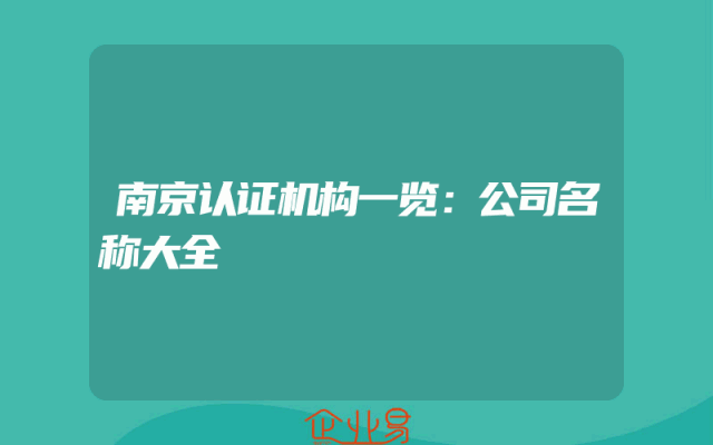 - 南京认证机构一览:公司名称大全一、南京认证机构概述南京,作为江苏省的省会城市,拥有众多认证机构,涵盖了各类企业资质办理服务。这些机构为企业提供全方位的认证支持,助力企业稳健发展。本文将为您详细介绍南京的认证机构,包括公司名称、服务范围及特点