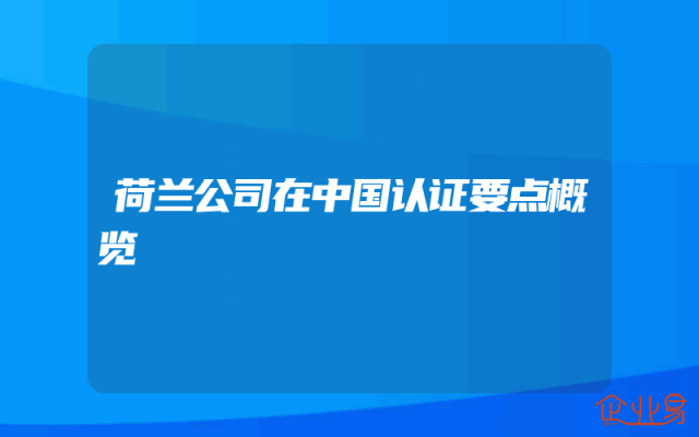 - 荷兰公司在中国认证要点概览
