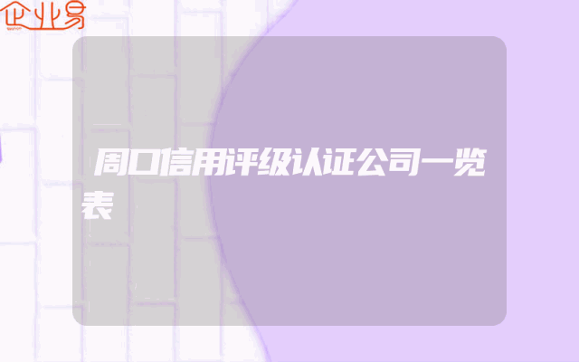 - 周口信用评级认证公司一览表