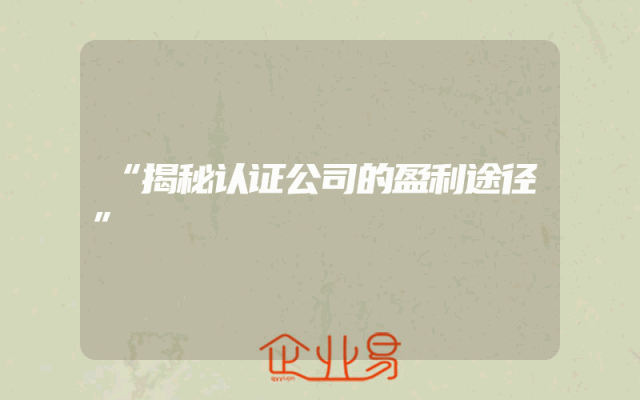 - “揭秘认证公司的盈利途径”