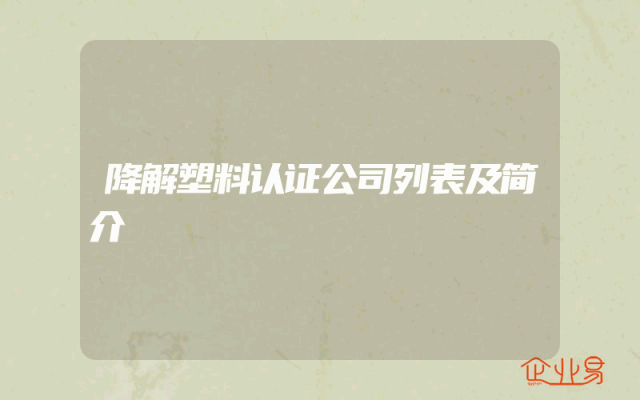 - 降解塑料认证公司列表及简介