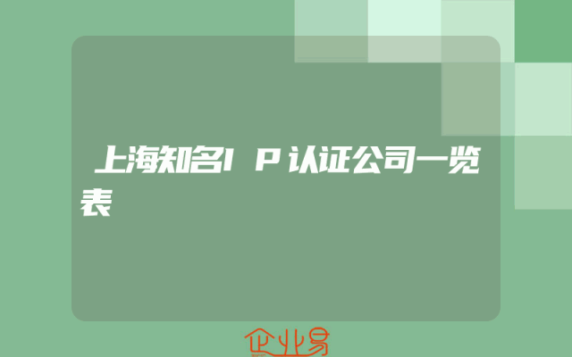 - 上海知名IP认证公司一览表一、上海IP认证行业概览上海作为中国的经济中心,拥有众多知名的IP认证公司,涵盖了知识产权保护、品牌授权等多个领域。这些公司通过提供专业的知识产权认证服务,帮助企业和个人保护其原创成果和品牌权益。二、知名IP认证公