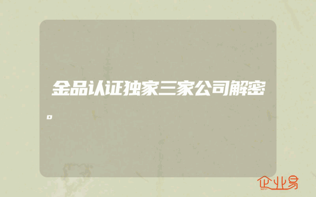 - 金品认证独家三家公司解密一、金品认证概述在当今竞争激烈的市场环境中,企业为了提升自身品牌形象和竞争力,纷纷寻求各种认证来证明自己。金品认证作为行业内具有较高权威性和影响力的认证之一,受到了众多企业的追捧。本文将独家解密三家成功获得金品认证的
