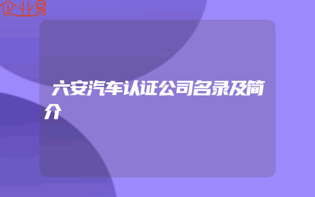 - 六安汽车认证公司名录及简介一、引言随着汽车行业的快速发展,汽车认证作为保证汽车质量和安全的重要环节日益受到关注。在安徽省六安市,众多汽车认证公司应运而生,为当地及国内外汽车行业提供优质的服务。本文将介绍一些六安地区的汽车认证公司名录及其简介