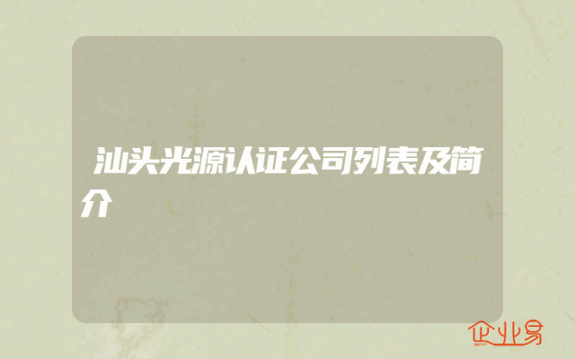 - 汕头光源认证公司列表及简介一、汕头光源认证公司概览汕头,作为经济快速发展的地区之一,拥有众多优秀企业,其中包括一批专注于光源认证的公司。这些公司在光源技术研发、产品认证方面有着卓越的成就,为行业及消费者提供高质量的服务。二、部分汕头光源认证