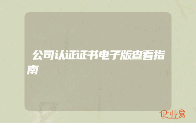 - 公司认证证书电子版查看指南随着互联网技术的快速发展,许多企业的运营和管理工作已经逐渐实现了电子化、网络化。在企业的资质管理领域,电子版的认证证书因其方便查阅和环保节能的特点而受到广泛应用。以下为您提供详细的认证证书电子版查看指南,以