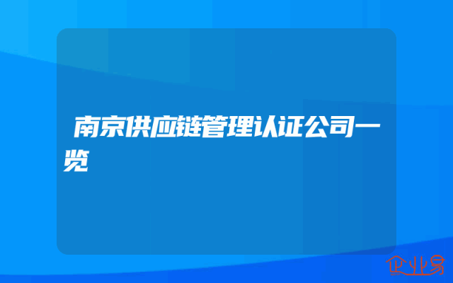 - 南京供应链管理认证公司一览