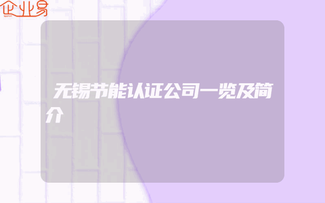 - 无锡节能认证公司一览及简介